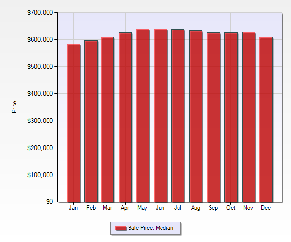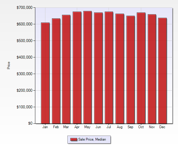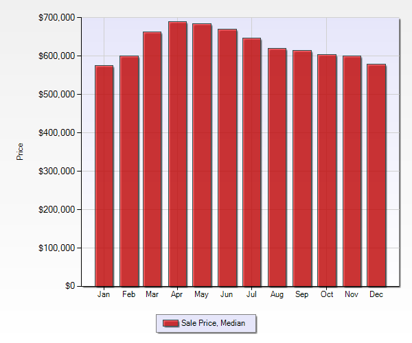• 2022: The highest prices were recorded in April at $689,950, closely followed by May at $685,000. Sellers got a bit of an early start that year